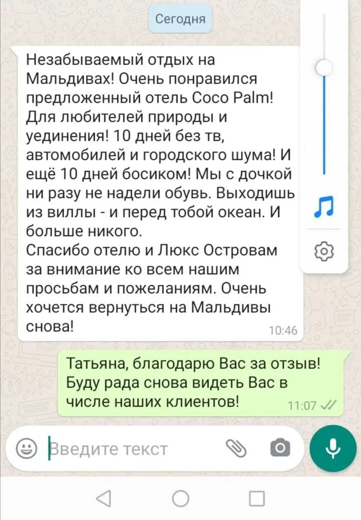 Лучший сервис и персональный подход на протяжении всего отдыха!