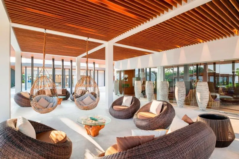 Полюбуйтесь закатом над Индийским океаном из бара на открытом воздухе. Большие плетеные кресла и диваны — идеальное место, чтобы насладиться коктейлями и легкими закусками, общаясь с семьей и друзьями. Любимое место для посиделок гостей.