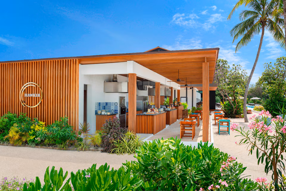 • На территории — японский ресторан над водой, Sunset Bar с видом на океан и Hawker с атмосферой уличной азиатской кухни.