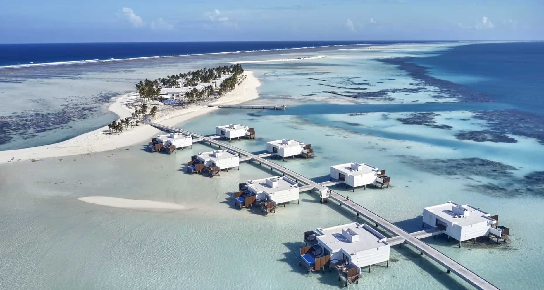 - Уникальные виллы над водой с личными бассейнами, откуда открывается панорамный вид на лазурную лагуну.