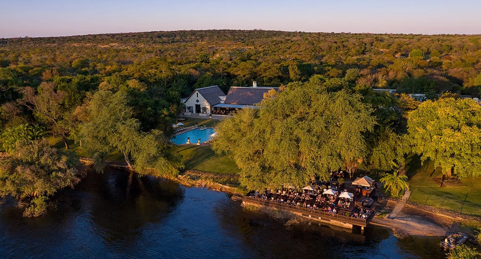 Расположен в национальном парке с полным доступом к водопаду Виктория и видом на реку Замбези